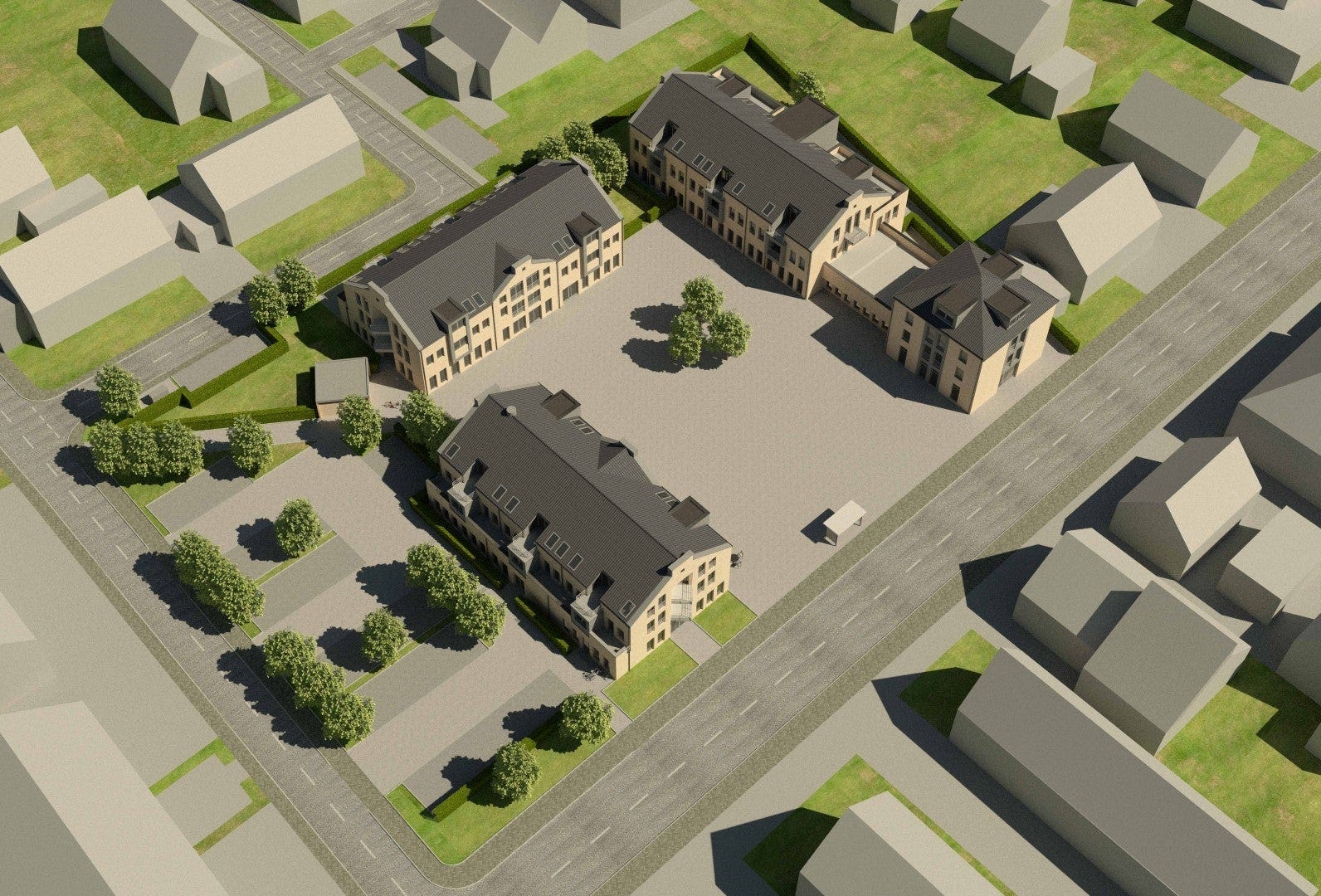 Das Bauprojekt besteht aus drei Gebäuden in 3 und 4-geschossiger barrierefreier Bauweise mit Zeltdach. Es wird der KfW 40-Standard erreicht. Die Gebäude umschließen den neu gestalteten Böckmannplatz.