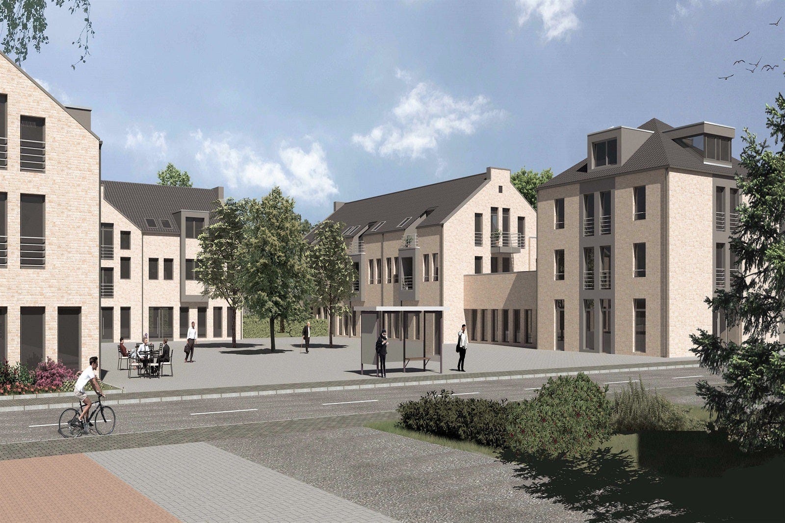 Im Gebäude „Haus 2“ entsteht eine Tagespflege mit 18 Plätzen sowie eine Sozialstation im Erdgeschoss. In den anderen Etagen entstehen darüber hinaus 10 Wohneinheiten des betreuten Wohnens.