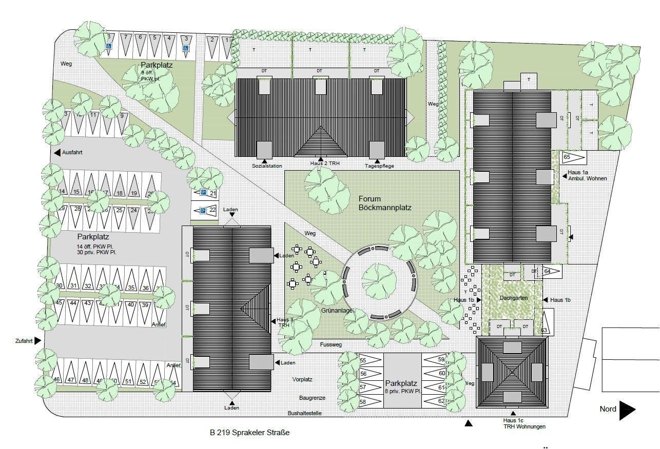Nach Jahren als regelmäßig gemähter Grünfläche gibt es jetzt einen Plan zur Bebauung der Sprakeler Mitte, des Böckmannplatzes. Das Unternehmen GMP Projekte GmbH & Co. KG will dort eine seniorengerechte Wohnanlage errichten.